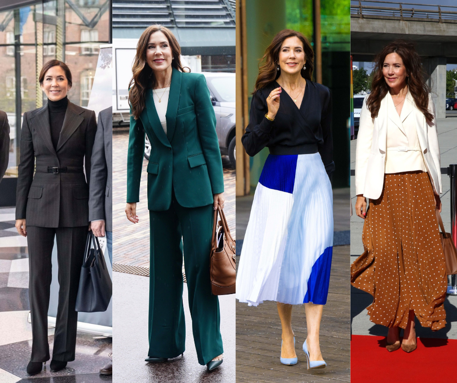 Another example is Crown Princess Mary of Denmark, who is often compared with the Princess of Wales. She can often be found in a skirt and blouse or a pantsuit.
