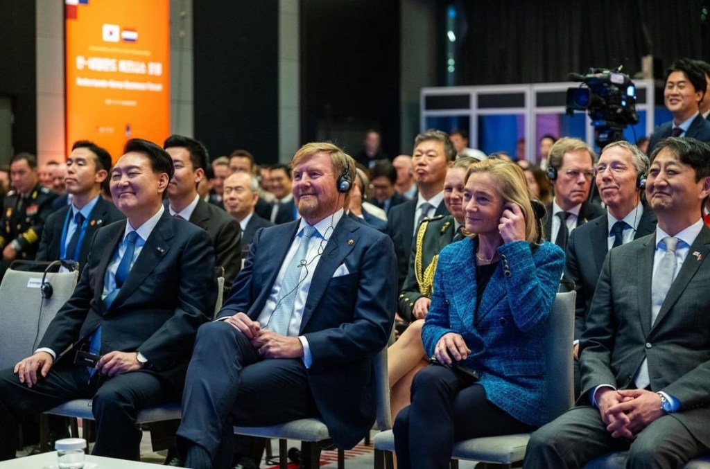 In the afternoon, they attended another business forum, this time between the Confederation of Netherlands Industry and Employers and the Korea International Trade Association. During the final session, the President gave a speech, with the King sitting in the audience.