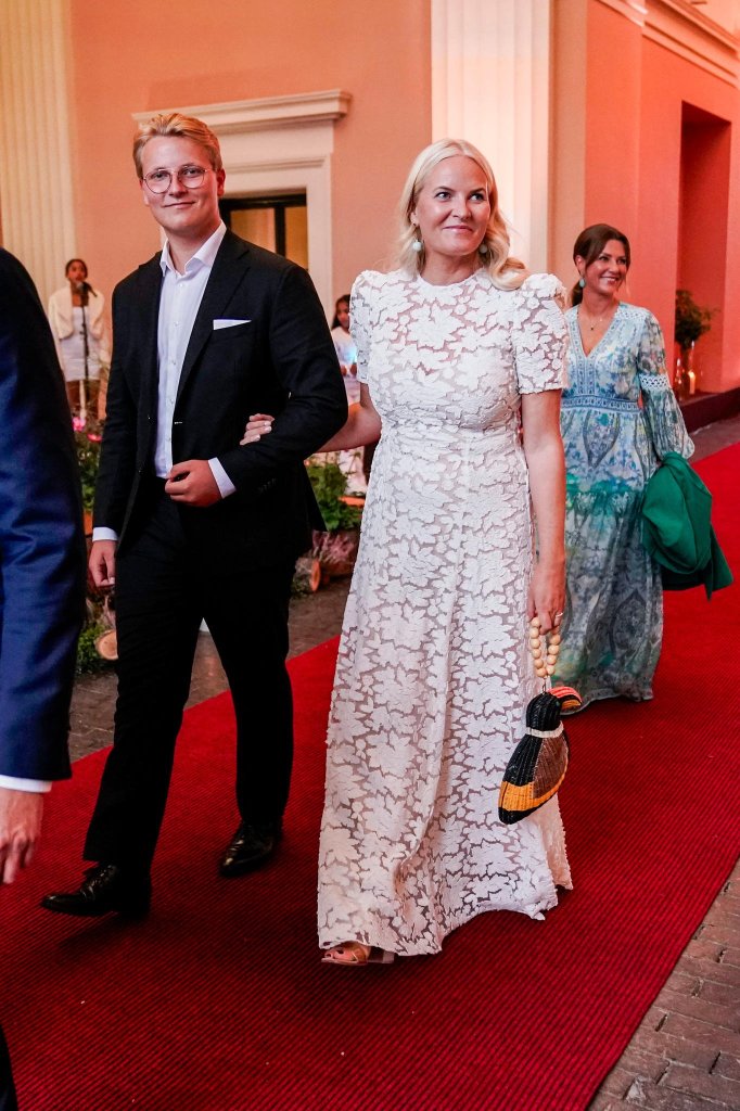 For their 50th birthday bash, Crown Prince Haakon and Crown Princess Mette-Marit celebrated with a garden party in Oslo this year. Mette-Marit wore a lovely dress from The Vampire’s Wife, a brand she wears quite often. It’s summery and light, and with a little toucan bag? Adorable.