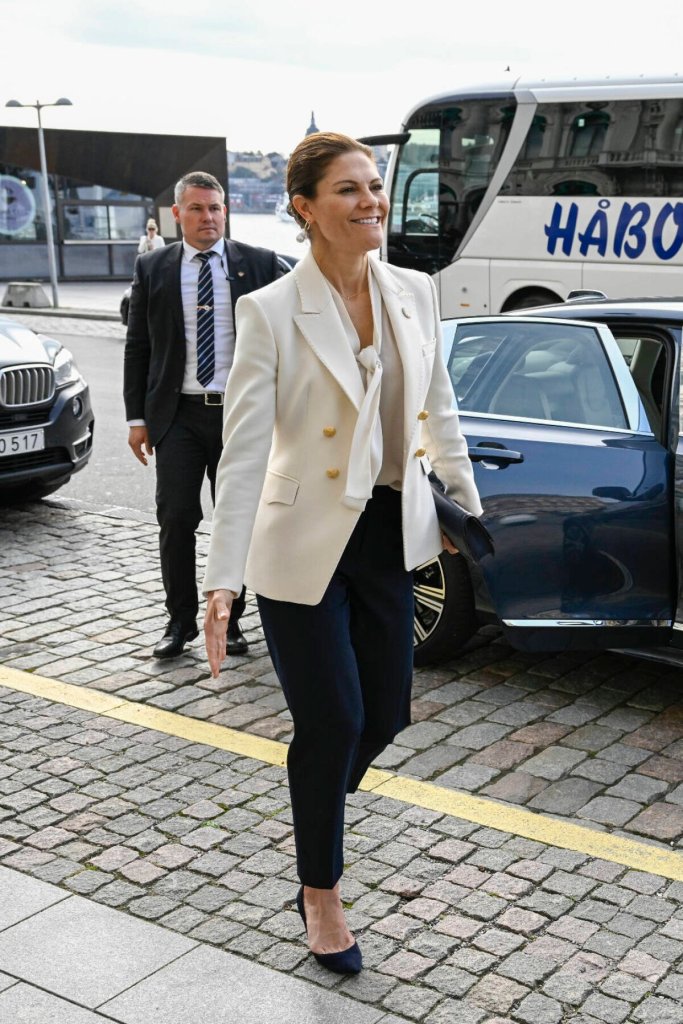 I would be remiss if I didn’t include one of Victoria’s infamous pantsuits on this list. She wears them more often than not for engagements, and this lunch to present the Björn Carlson Baltic Sea Prize was no exception.