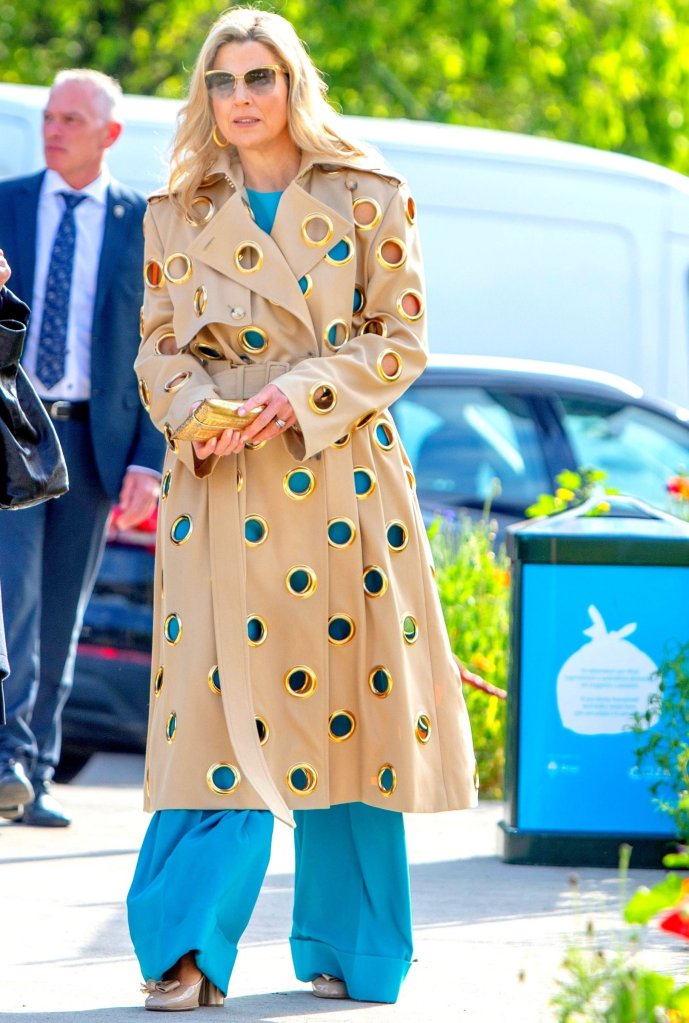 This is an absolutely bonkers look. There’s a lot going on here and I’m going to repeat what I said previously: sometimes less is more. That’s not something I ever thought I would say about Queen Máxima but here we are. This Swiss cheese coat is covering what looks to be a really lovely outfit underneath! But even that pretty blue isn’t going to save this one. Máx is always one to take risks and I adore that about her but this was one that needed to stay on the rack.