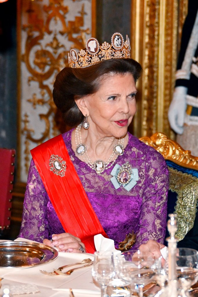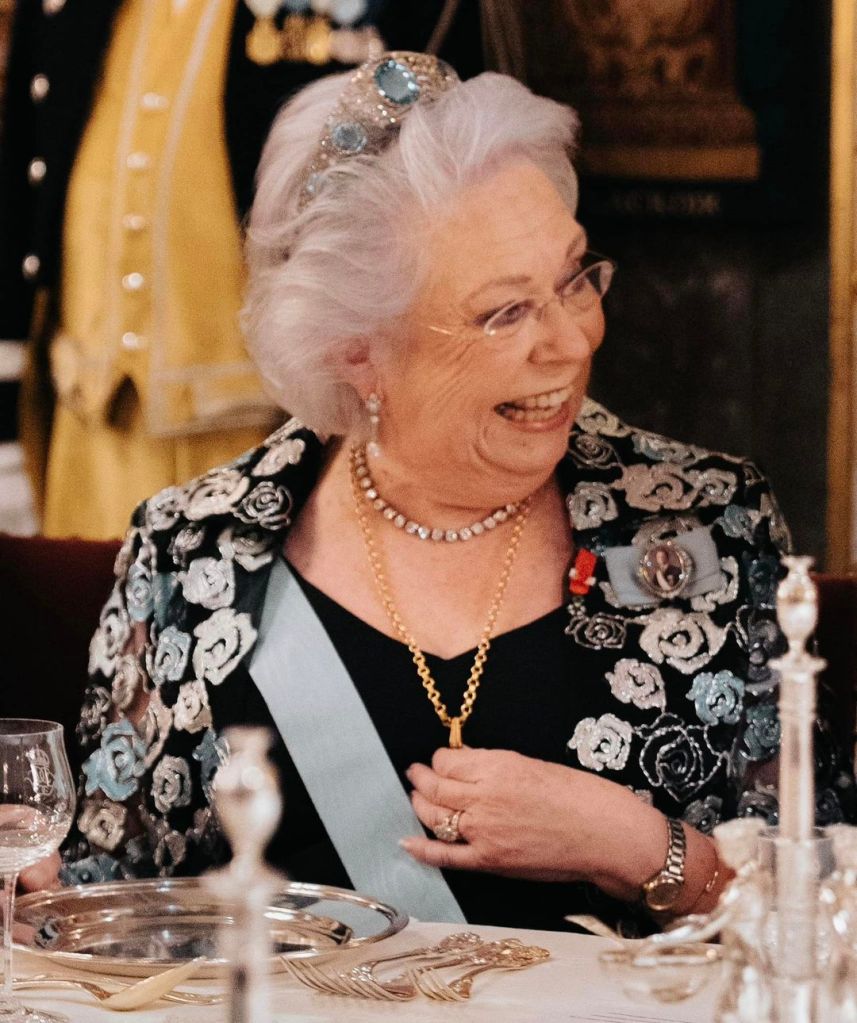 Queen Silvia repeated the purple gown she wore to the Nobel Prize ceremony in 2022. The colour is bright and fitting for a queen certainly, but the skirt is not my favourite so I wasn’t over the moon with the re-wear. That being said, we love recycling outfits here at The Royalty Nerd, so I’m not complaining too much.