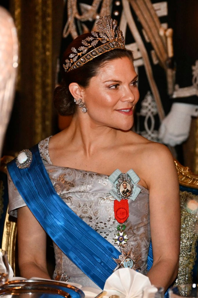 She also reached for a tiara with French connections: the Napoleonic cut steel tiara. This tiara does not have a single jewel on it, it shines because it is highly polished cut steel, as the name might suggest. It’s not my number one favourite tiara in the Swedish collection, but definitely in the top five.