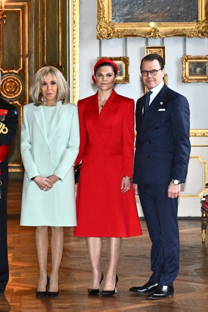 The King, Queen, and Macron’s were joined later on for lunch by other members of the Swedish royal family, including Princess Sofia, Prince Carl Philip, Crown Princess Victoria and Prince Daniel.