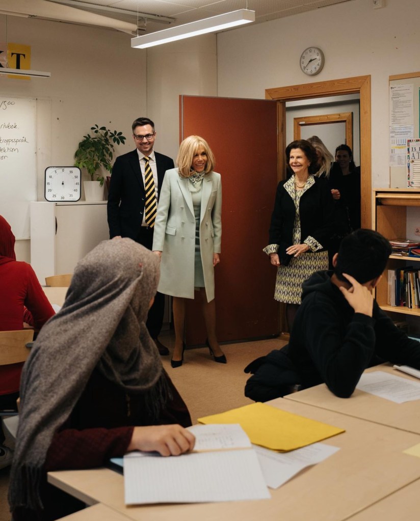Meanwhile, Queen Silvia and Brigitte Macron visited Barnahus in Malmö.