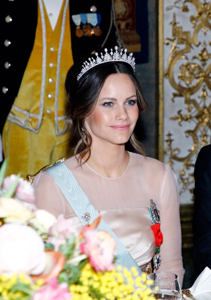Princess Sofia also looked lovely that evening in a Lars Wallin gown and her wedding tiara.